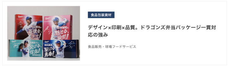 ドラゴンズ選手弁当のパッケージ制作事例をご紹介しました。