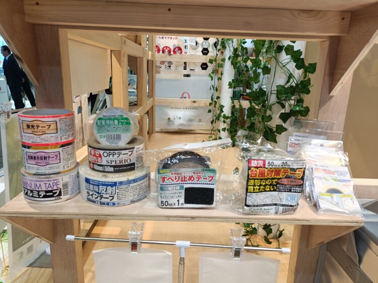 蛍光テープやOPPテープ、台風対策テープなど様々な種類を展示しました。