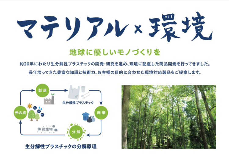 約20年にわたり生分解性プラスチックの開発・研究を進め、環境に配慮した商品開発を行ってきました。