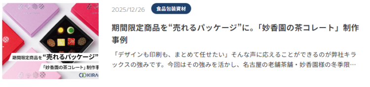 キラックスは、パッケージから販促ツールまで一貫対応し、ブランドの魅力を最大限に引き出すデザインをご提案します。